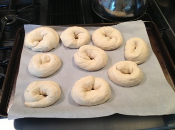 The first recipe with diastase was Bagels. In Houston, TX it is quite a challenge (if possible at all) to find a good bagel. To all you Einstein's and Panera fans, sorry, that's not a bagel. Armed with my diastatic malt powder and my bagel recipe (see yesterday's post), I went to work.